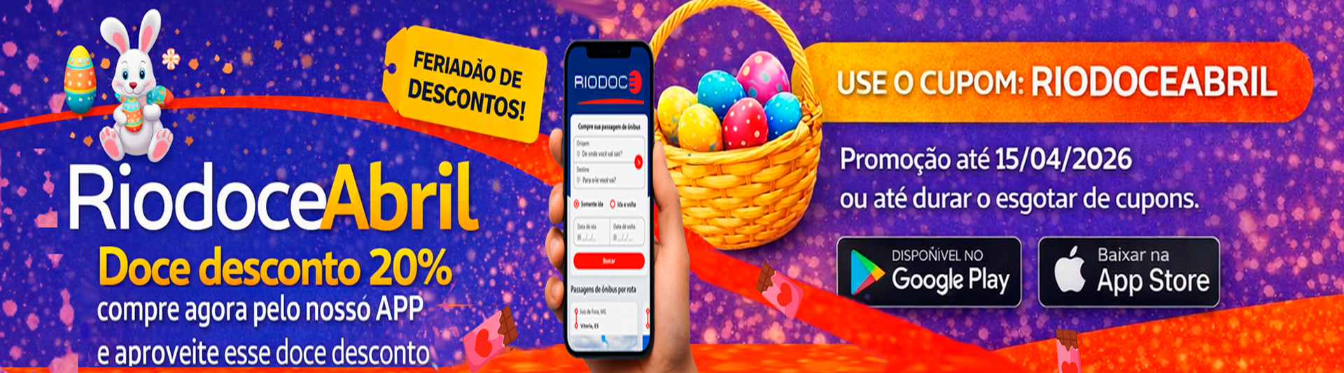 Baixe nosso aplicativo, use o código RIODOCEABRIL e viaje com os melhores preços.